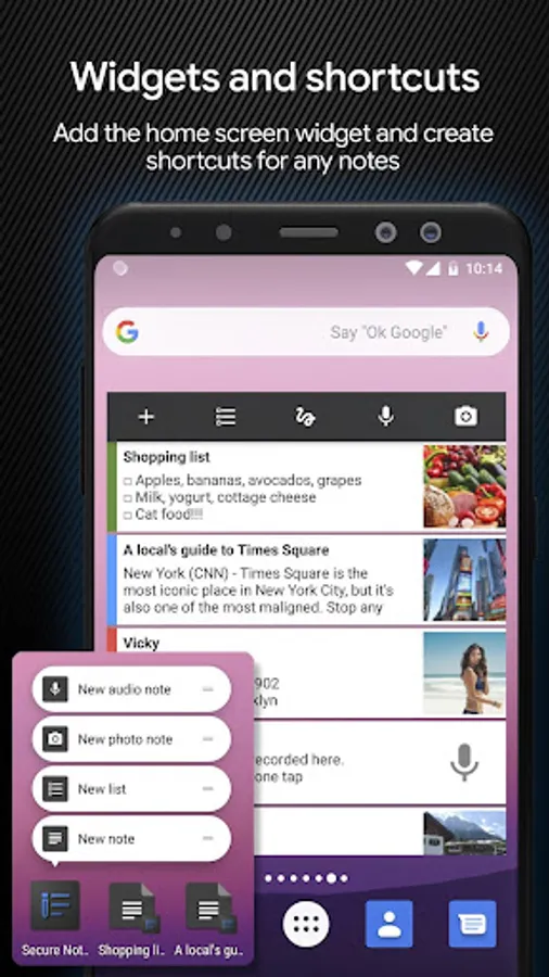 • Home screen shortcuts for individual notes