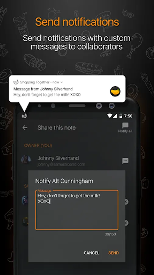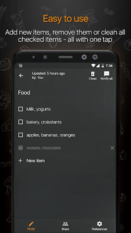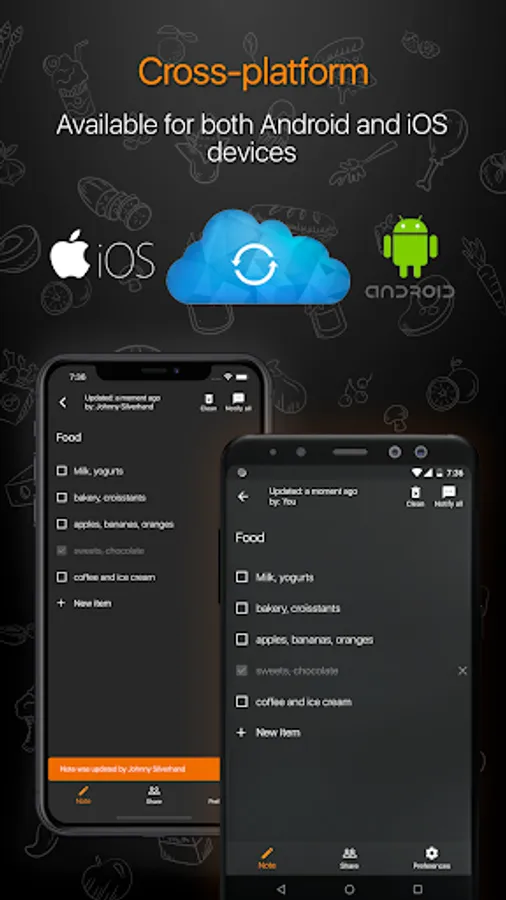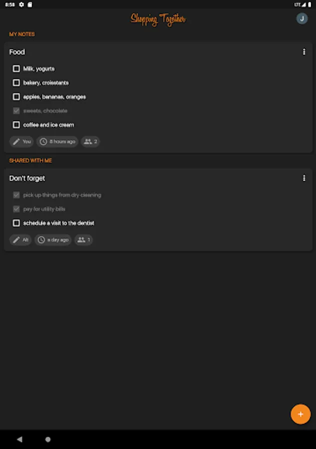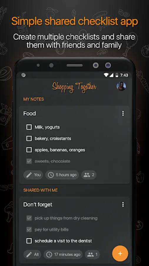 Shopping Together - is a simple note app for sharing checklists with friends and family. Now you do not need to ask what to buy, again and again, clogging your messenger with the same questions.