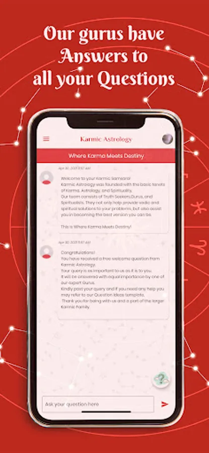 Karmic Astrology is an application based on the basic principles of the Vedas, Karma, Astrology and Spirituality where you can get your own personalized reading and predictions from our team of Truth seekers, Gurus and Spiritualists. Such readings are based on your unique natal birth chart and help to not only address your current troubles and hindrances but also in you becoming a better version of yourself as well.