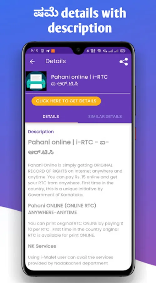 If people need to know their land record details and i-RTC, they can download this app know the information and redirected to government website [https://landrecords.karnataka.gov.in/] for full details.