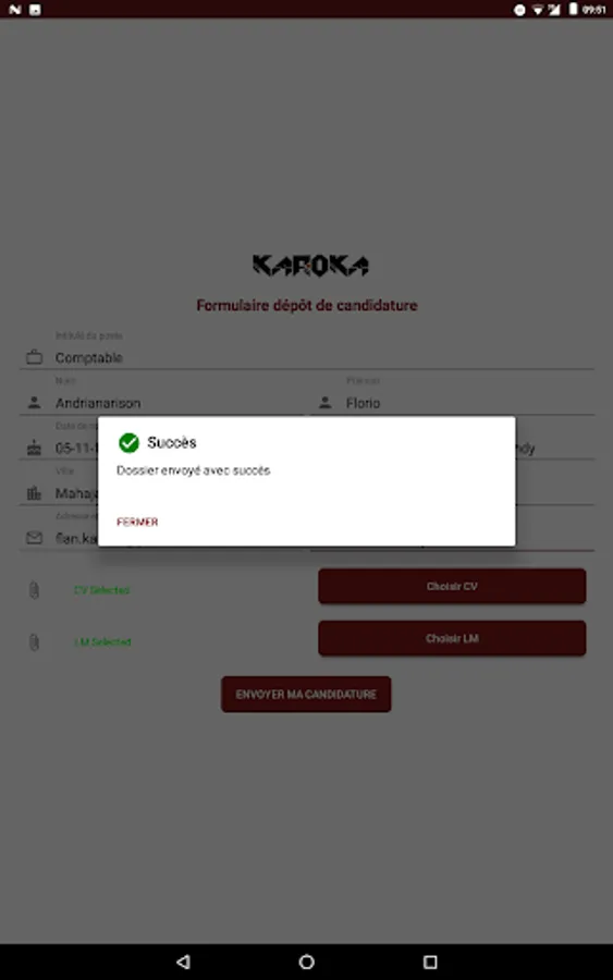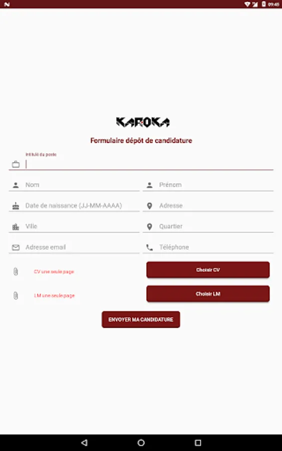Job Application KAROKA is an application to send a job request in the KAROKA company in Mahajanga.