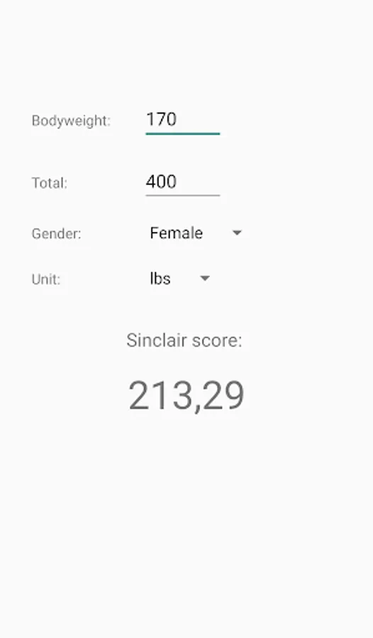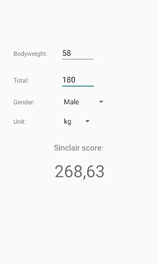 Simple Sinclair / Robi points calculator for olympic weightlifting. Supports both metric and imperial units.