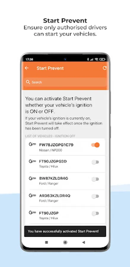 Use Start Prevent to ensure only authorised drivers can start your vehicles