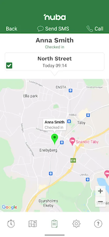 The manager can at any time check up on who is working and that everyone is at the correct location. The position of the user is taken automatically when checking in and out.