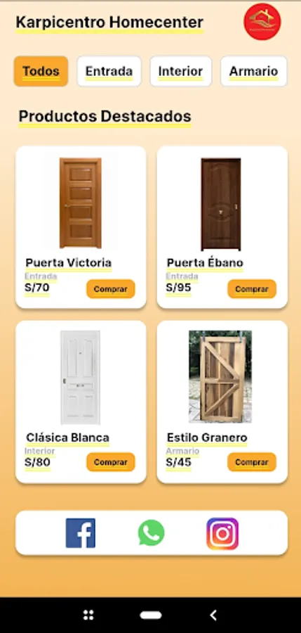 Karpicentro Homecenter is a complete and convenient mobile application designed to offer you a wide range of wooden furniture for the home. Our app is the go-to destination for those looking to beautify and enhance their living spaces with durable, aesthetically appealing, and functional furniture.