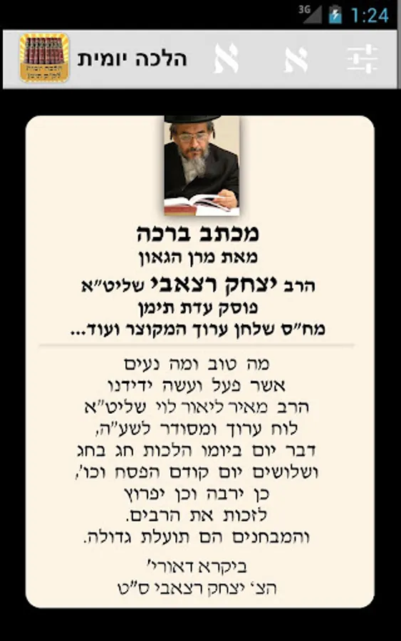 Every morning, at the beginning of a new day when you open your smartphone, you have a chance to start the day with something spiritual, Daily Halacha study, which will obviously give you a good positive impact on all day