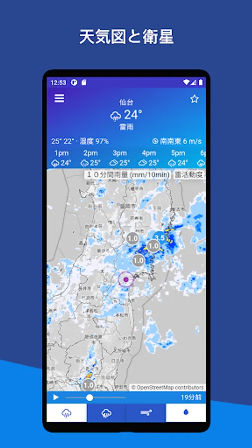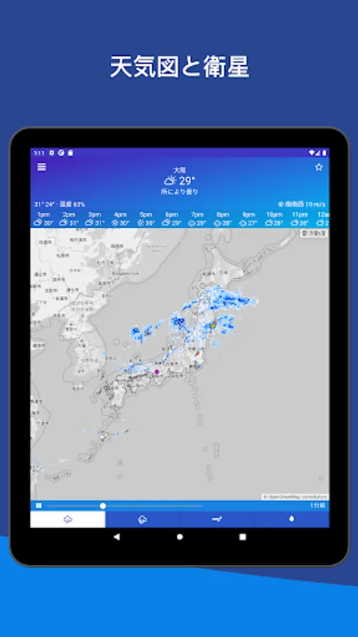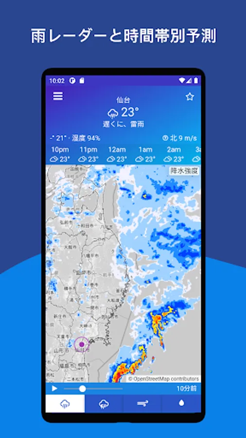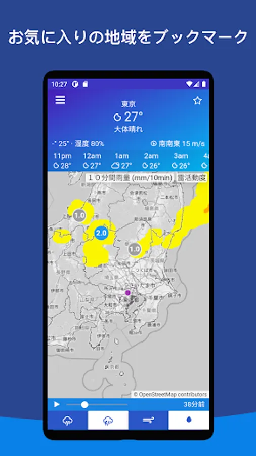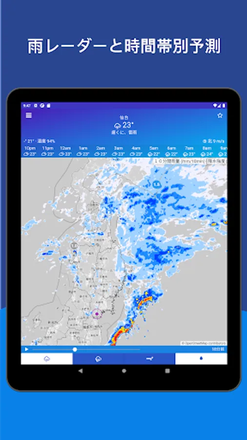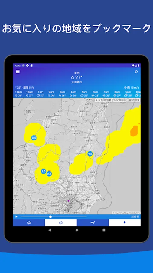 * Designed for quick access to Meteorological Agency weather forecasts for rain and snowfall. Even when you are out, you can display the rain, snow, and weather of the Japan Meteorological Agency radar from your current location.