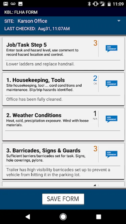 All KBL field workers should download the No.1 safety app for access to FLHA, Site Inspections, Vehicle Inspections and the Corrective Action Forms for any hazard identified in the forms. This reduces paper used on site and allows for easier sharing among the subtrades, clients and the office.