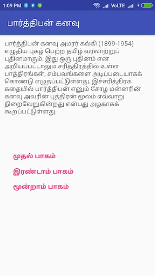 Parthiban Kanavu, Kalki Krishnamurthy famous historical novel written by Kalki serialized in the magazine. It appeared then that thread. Parthiban iccarittirak the Chola King's Dream in the story of how he passed through the son that was fair. Narasimha PALLAVAN, as ciruttontar Paranjyothi historical characters that are in the story.