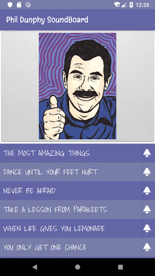 Presenting the Phil Dunphy SoundBoard with Phil's best catchphrases, pearls of wisdom from Phil'so'sophy. Now take the sounds of the funniest character from the Modern Family everywhere with you. More sounds coming soon.