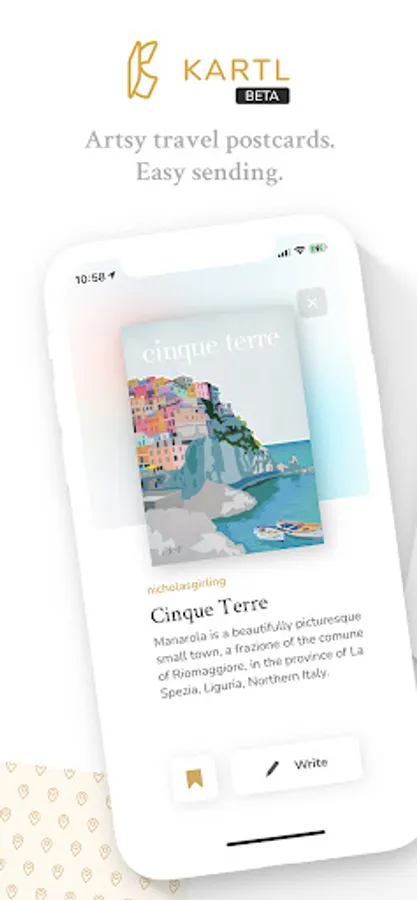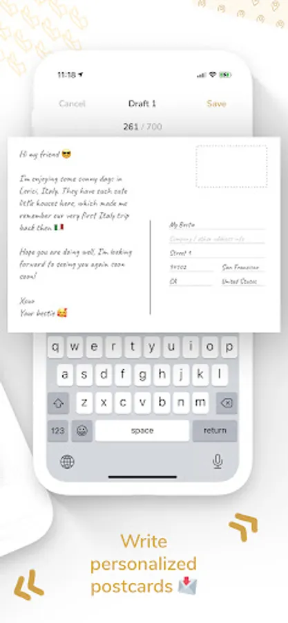 > Write personalized postcards conveniently on your phone (writing postcards on the way back home on the plane? We feel you!)