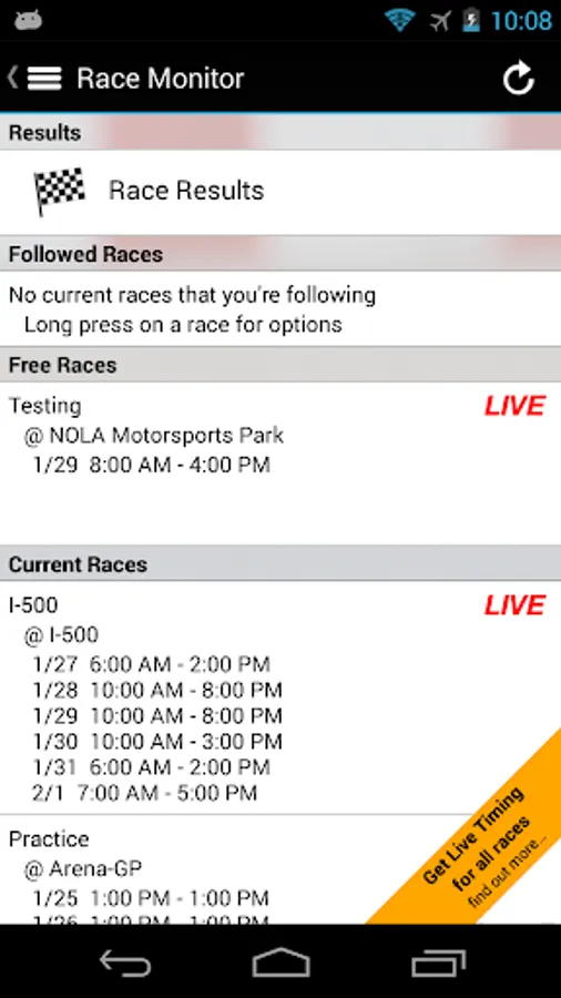 An in-app upgrade to Race Monitor Plus is available which will unlock additional features including a Heads Up Display for racers (includes historical lap times), and Racer Alerts to let you know when a racer you're following goes on track.
