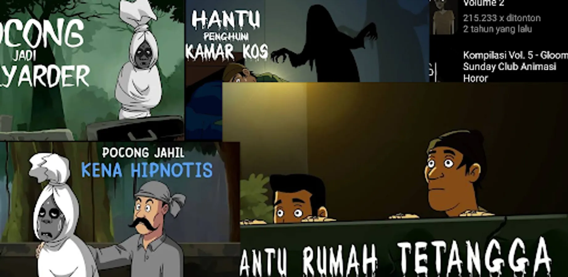 There are also other types of cartoons such as fairy tales, folklore, prophet stories, animated films, Muslim women, dinosaurs, robots, residents vs ghosts, adventure, strategy, funny, laugh out loud, pocong hunter and even old collections.