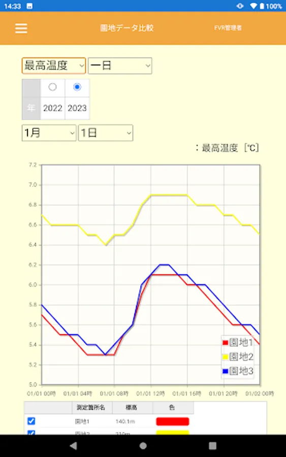 Garden year comparison: You can compare and display the temperature of each garden for each year.