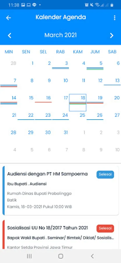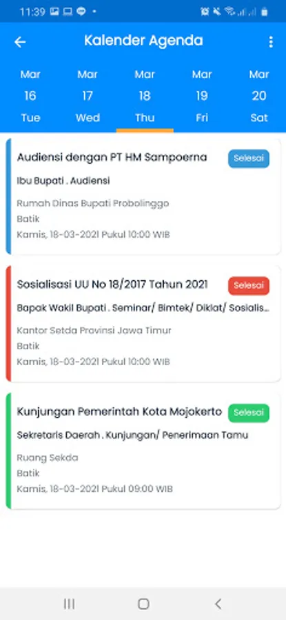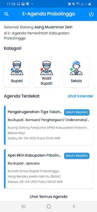 E-Agenda is a media provided by the Probolinggo District Government to facilitate stakeholders in obtaining information on the schedule of local government activities. E-Agenda was born from the spirit of bureaucratic reform in the form of governance and strengthening the accountability of the management of Probolinggo District Government activities.
