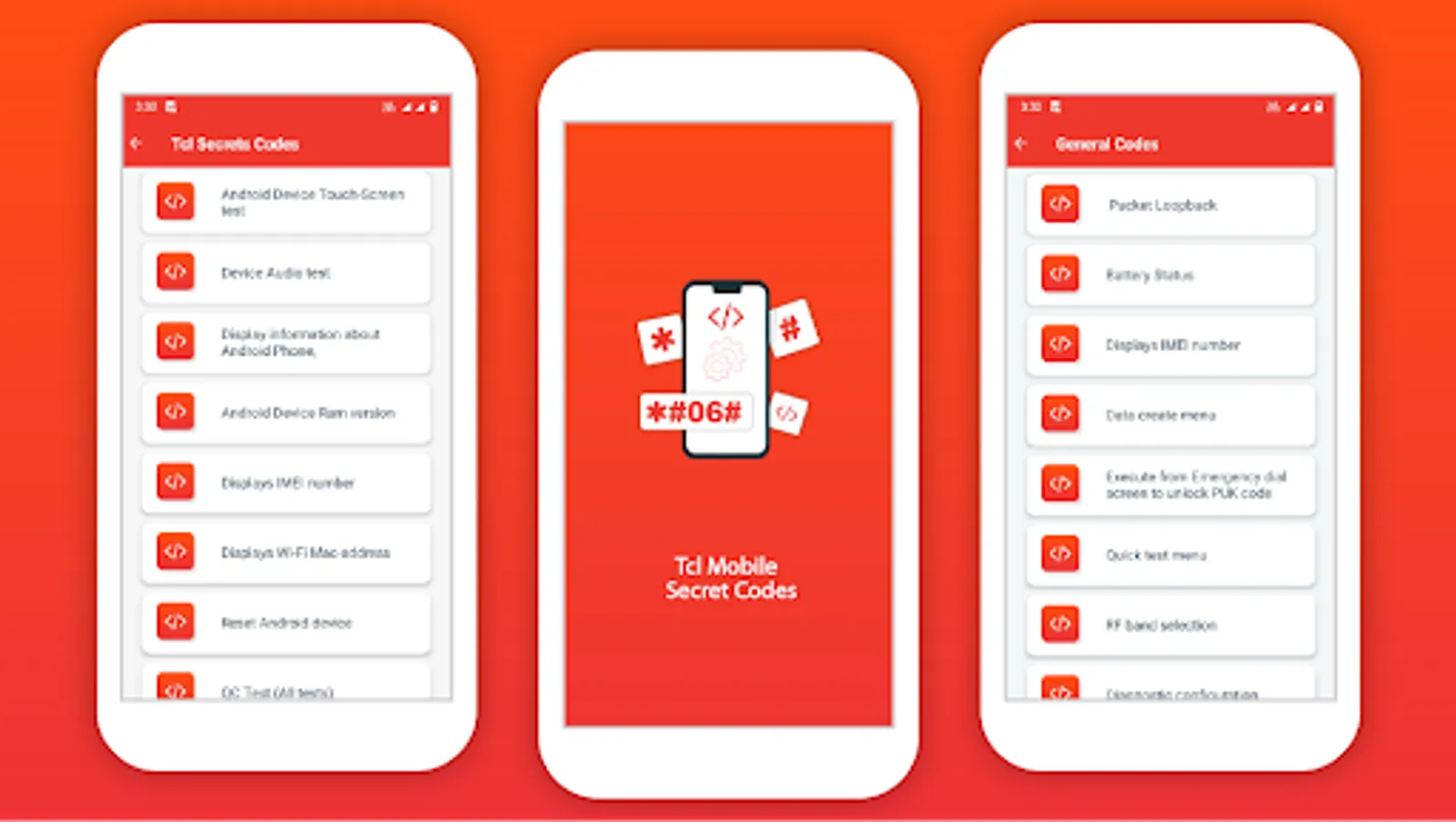 Secret Codes for TCL Mobiles include the android secret code of TCL. In this app, there is complete details of the hidden codes of the mobiles to change the setting and other function of your mobile’s functions which even can’t be changed in your mobiles setting personally.