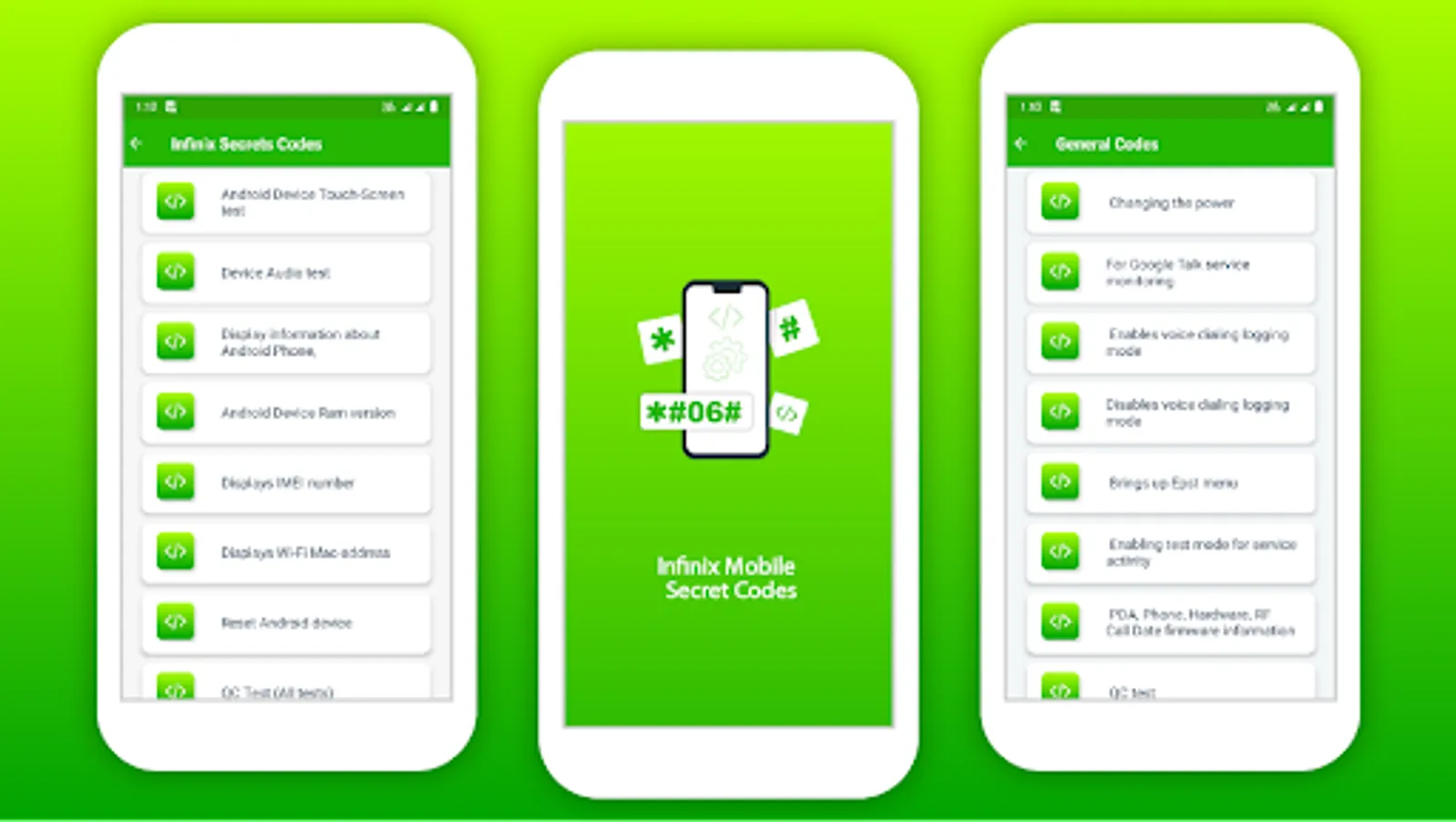 Secret Codes for INFINIX Mobiles include the android secret code of Infinix. In this app, there is complete details of the hidden codes of the mobiles to change the setting and other function of your mobile’s functions which even can’t be changed in your mobiles setting personally.