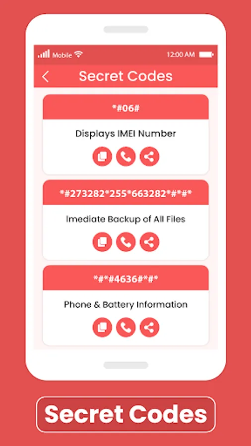 IMPORTANT! Some manufacturers do not allow the use of all these secret codes and may not work on your device. By using all the secret mobile codes, you can change some of your device settings. Use at your will!