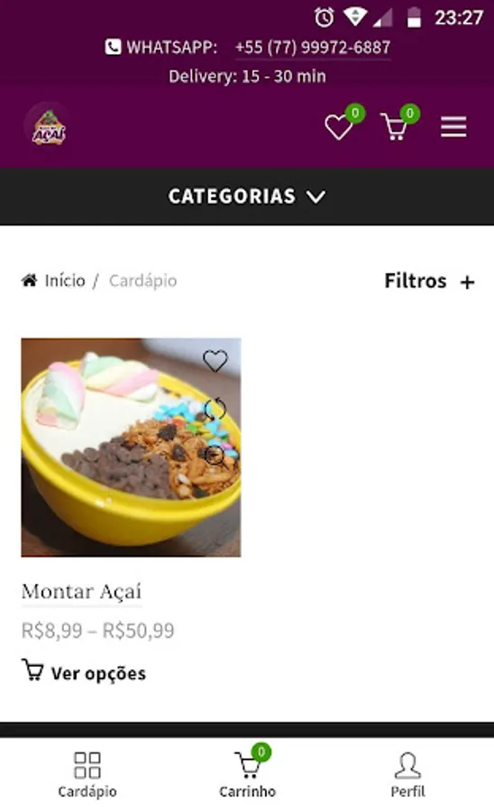 The Kasa do Acai is now application delivery. Come meet the delights of acai. You can order from anywhere and anytime directly with us. With efficient service, it will be a pleasure to serve you all and deliver your order as soon as possible. Come to Kasa from Acai!