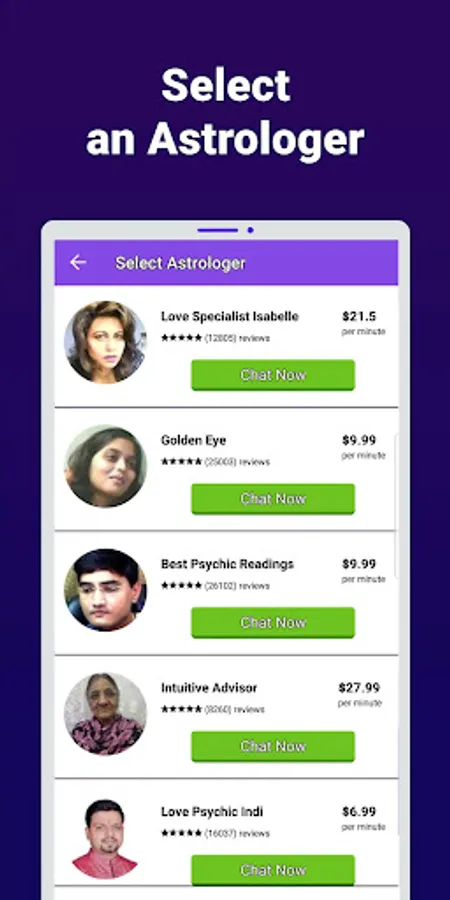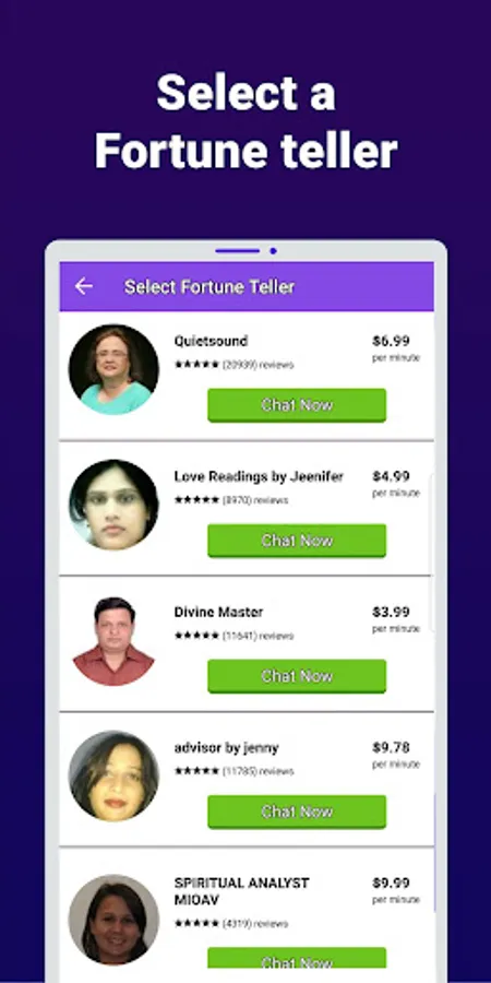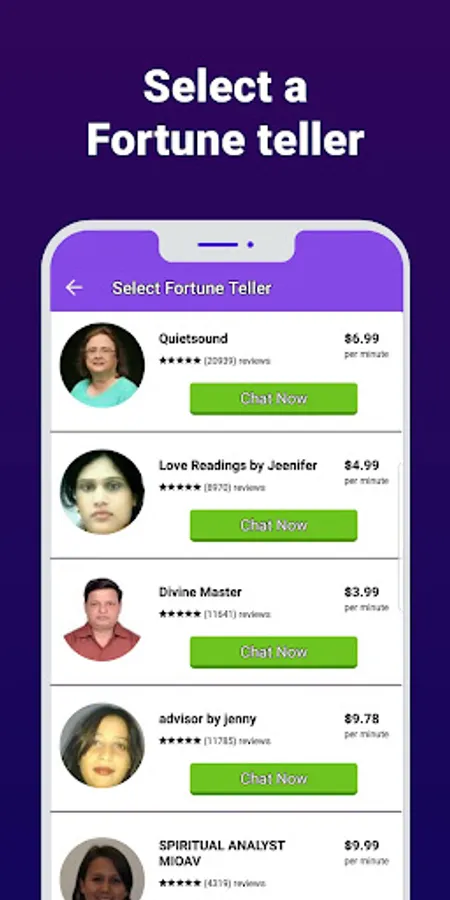 Review all psychics, choose your favorite Fortune Teller and start a conversation with him/her. The first 3 minutes are free!
