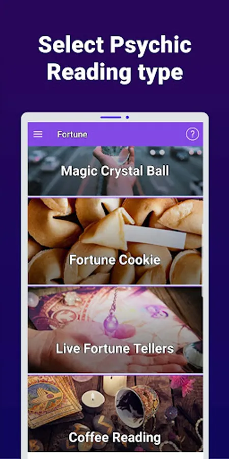 Fortune Teller predicts information about a person’s life. This fortune telling app will reveal your unanswered questions about your life and future, using professional psychics who will analyze your life path.: