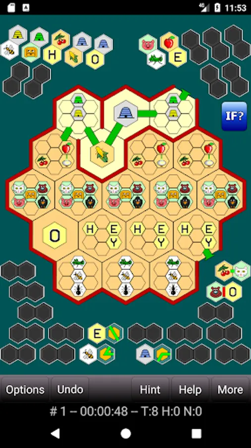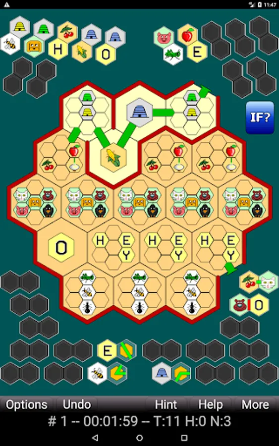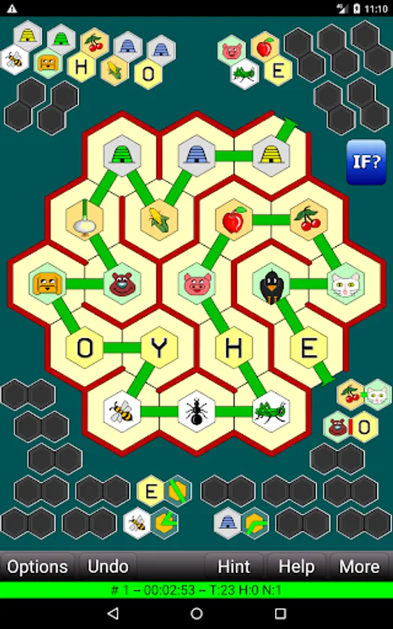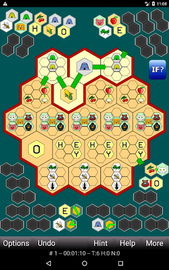 Honeycomb Hotel is a game of logic and deduction. The Zen version provides 144000 puzzles, 48000 in each of small, medium, and large sizes. The goal of each puzzle is to determine the placements of images within the honeycomb (up to 37 different cells on the large puzzles) and to determine the exact path that runs through each cell of the honeycomb. You're provided with sufficient clues (presented graphically) to determine all of this, using clear, cold, precise logic. Are you up to the task, or are you too buzzy?