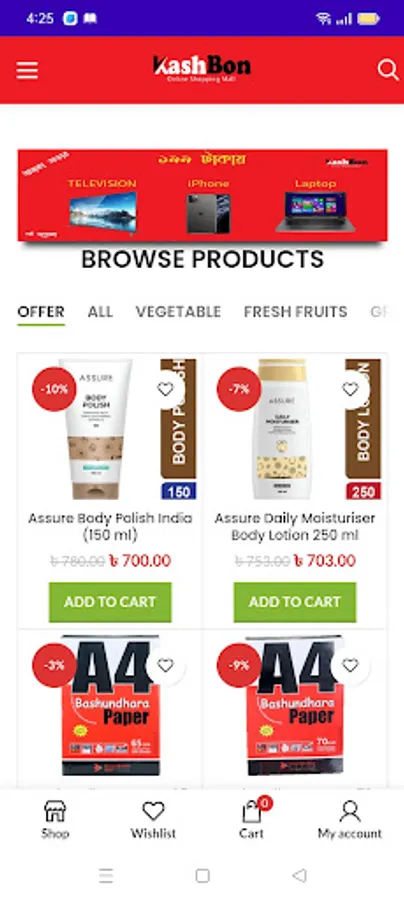 KashBon Online Shopping App in Bangladesh ( কাশবন অনলাইন শপিং) lets you Shop Millions of Products with Best Online Shopping Deals and In-App Shopping Discounts. Search products, shop by category, compare prices, read customer reviews, use Daraz voucher codes, and check status of your orders with order kashBon tracking facility.