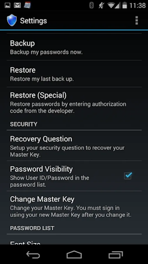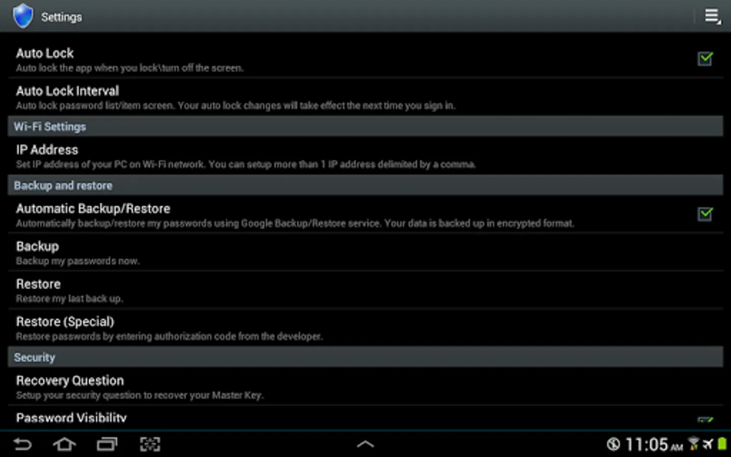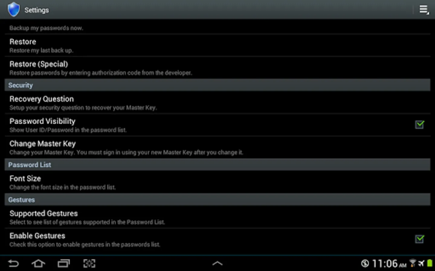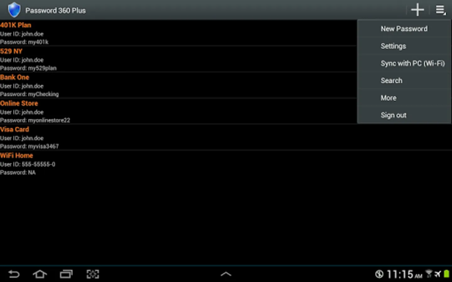 Password management app to secure passwords. Use the app on multiple phonestablets and be able to sync using PC app. The PC app comes free with the app.