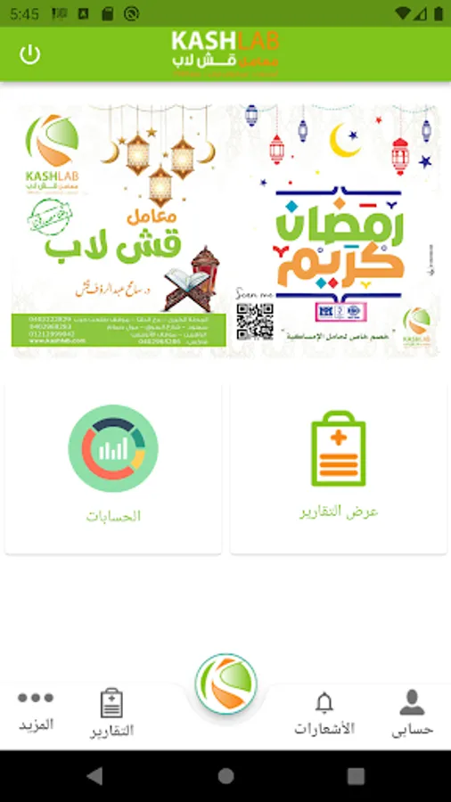 Kash Lab App for Patient and Contracts to get test result online easily and know some about our lab branches and offers