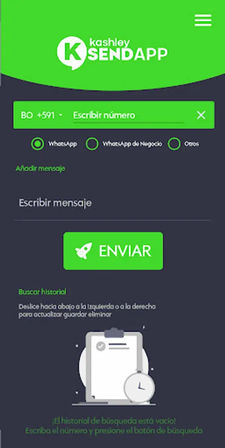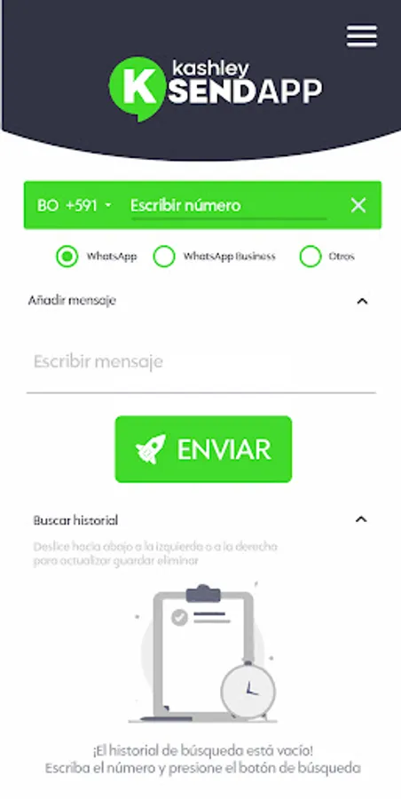 Kashley SendApp is a free application for Android devices developed by Kashley Estudio Digital Creativo that helps you send text messages to contacts that are not saved on your cell phone.