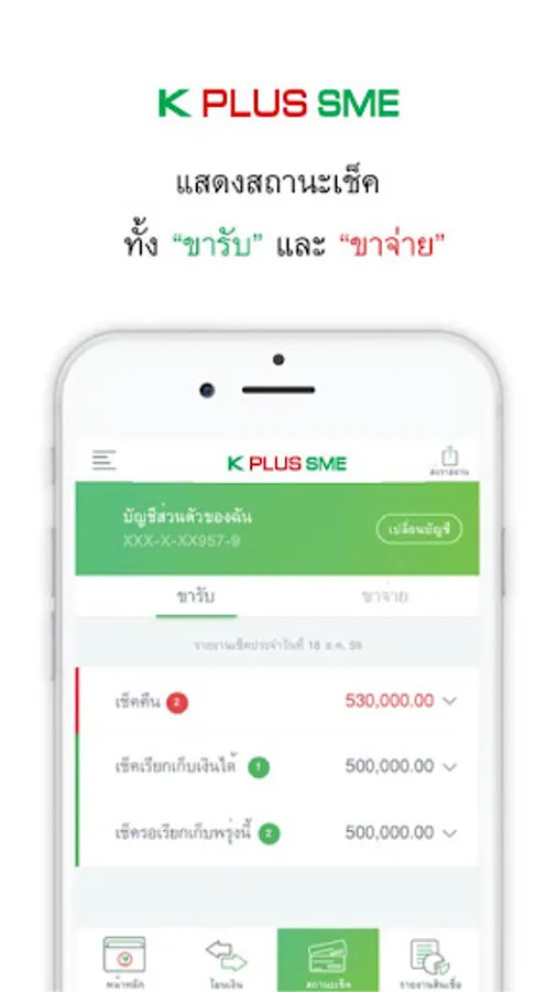 มากกว่า.. ด้วยฟังก์ชัน “สถานะเช็ค” ที่ช่วยให้คุณรู้สถานะเช็คแบบครบวงจร ทั้ง “ขารับ”และ “ขาจ่าย” พร้อมการแจ้งเตือนในกรณีที่เช็คมีปัญหา