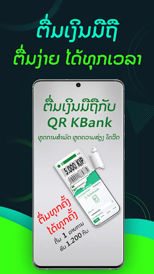 1. ດາວໂຫຼດແອັບ, ພິມ QR KBank