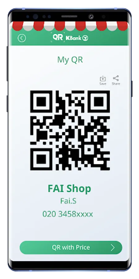 *Create QR code to receive QR Code payment from QR KBank application. No need to count, re-count and carry cash for a change!!!