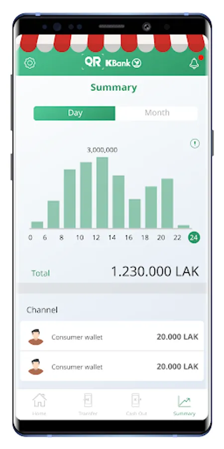 *With QR KBank Shop, all received payment will be digitally recorded in real time through the app and automatically summarized into a daily, weekly or monthly sales report to help you manage your business revenue.