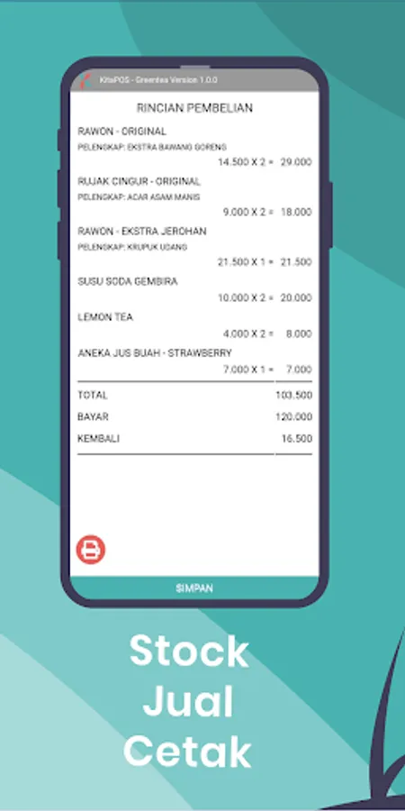 KitaPOS is a free licensed Mobile POS (Point of Sale), intended for Culinary-based MSMEs. This free cashier application is made to meet the needs of culinary business owners, including transaction calculations, receipt printing through thermal printers (POS Printers), sales data analysis, and product catalogs.