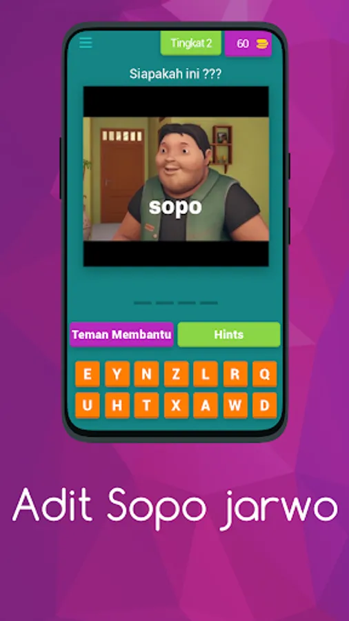 guess the name according to the image displayed. this game is perfect for both adult and general children. this game is perfect when we are relaxing at home or when outside the home when we are bored and have no daily activities. please download it for free at playstore and win until you can top the top ranking in this game.