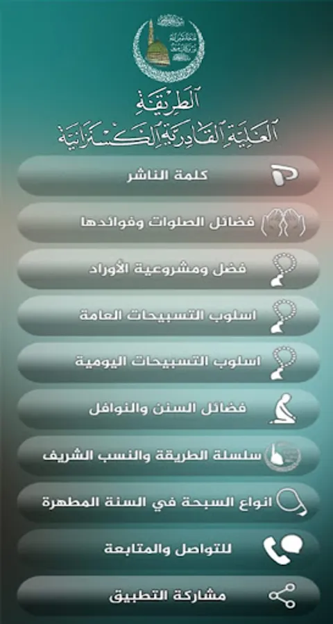 This application is the electronic version of the pamphlet of the levers of the upper method of Qadriyah al-Qisraniyya. We have been authorized by our Sheikh and our present professor, the head of the high way of Qadarsiyya al-Qezraniyya in the world, His Excellency Sheikh al-Ghouth al-Sultan, Caliph Muhammad al-Muhammad al-Muhammad al-Husseini al-Husseini.