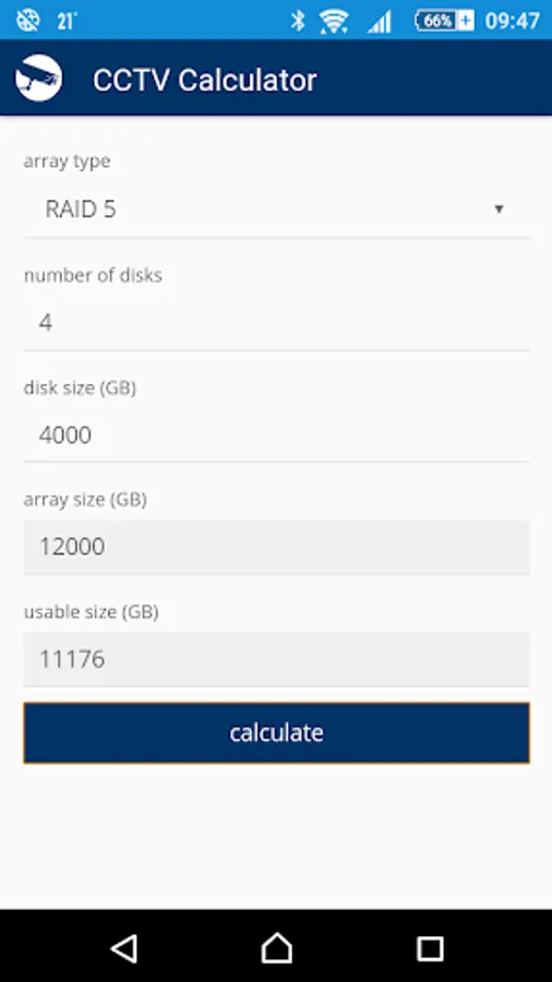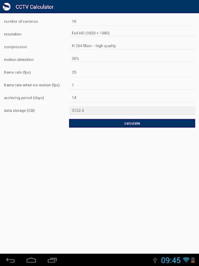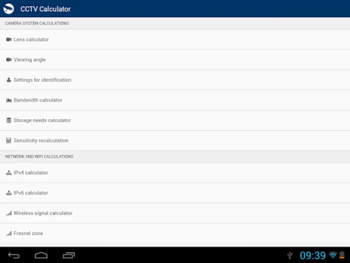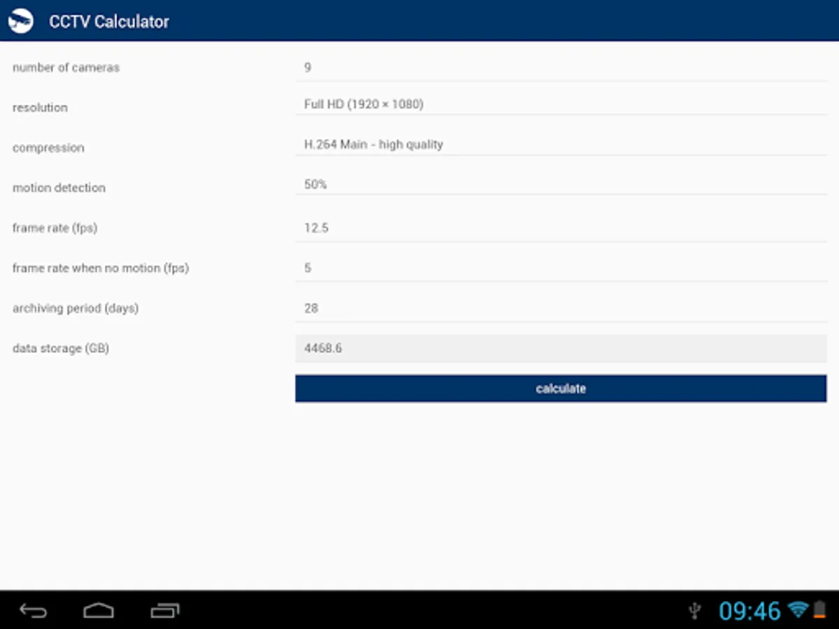 CCTV Calculator is a tool designated for camera system basic parameters determination and testing. It enables easy calculation of an appropriate focal length, camera view, IP camera bandwith, storage capacity for records archiving and of other camera system parameters.
