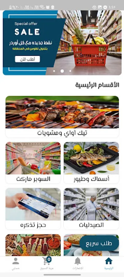 You can order all your needs from (supermarket - perfumery - food and grills - pharmacy - household appliances - detergents .... etc.) at once