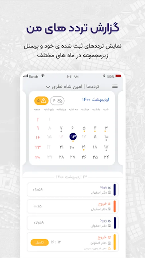 مشاهده گزارش تردد های ثبت شده ماهانه و روزانه