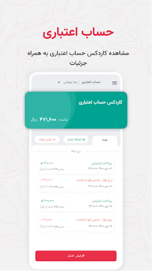 حساب اعتباری، مشاهده ی تراکنش ها و افزایش اعتبار