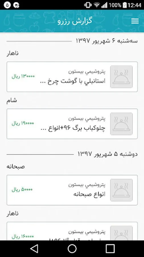 The software reservation, cancellation, see the food items, reports and reservations made by ... the Power of Kasra in its place and can be used for the company's employees have Hayst the Power of Kasra :)