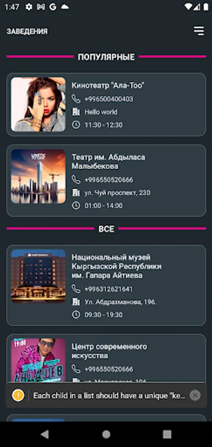 Welcome to our amazing event finder and viewer app! With KudaGo, you can find and explore a variety of events, from concerts and festivals to exhibitions and sporting events. Our application provides an easy and intuitive way to enjoy a variety of events in your area. Discover new interests, connect with like-minded people and create unforgettable experiences. Download KudaGo now and start your exciting journey through the world of events!
