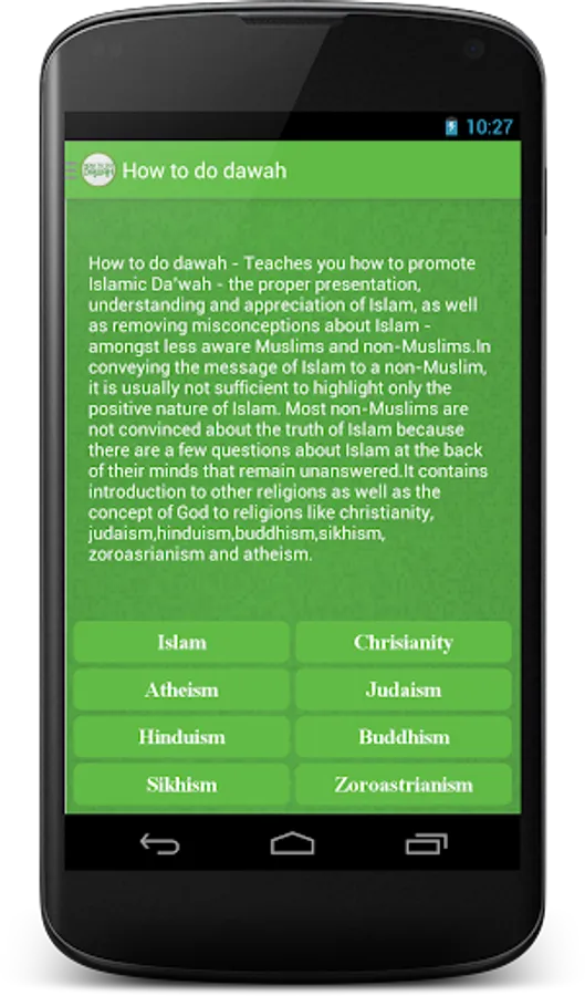 How to do dawah - Teaches you how to promote Islamic Da’wah - the proper presentation, understanding and appreciation of Islam, as well as removing misconceptions about Islam - amongst less aware Muslims and non-Muslims.In conveying the message of Islam to a non-Muslim, it is usually not sufficient to highlight only the positive nature of Islam. Most non-Muslims are not convinced about the truth of Islam because there are a few questions about Islam at the back of their minds that remain unanswered.It contains introduction to other religions as well as the concept of God to religions like christianity,judaism,hinduism,buddhism,sikhism,zoroasrianism , atheism.