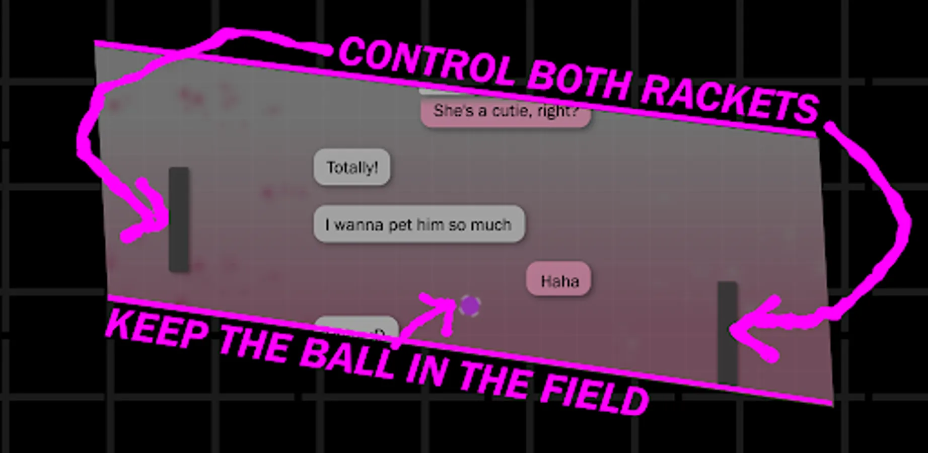 And play it all as a ping-pong conversation simulation where you control both racket to keep the ball inside the field.