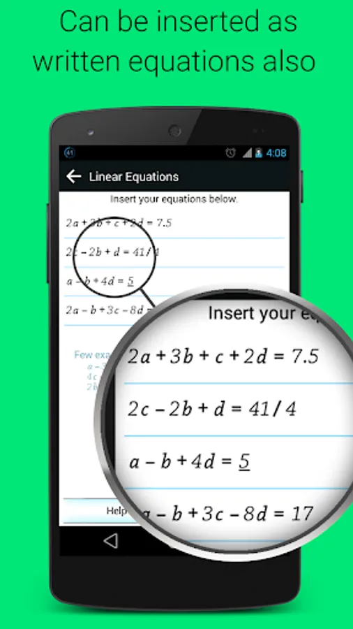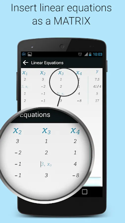 ★ Ability to solving systems of linear equations by inserting equations as the way they are written. Unlike in mostly available apps, you don’t need to format your equations. The app will do it for you.