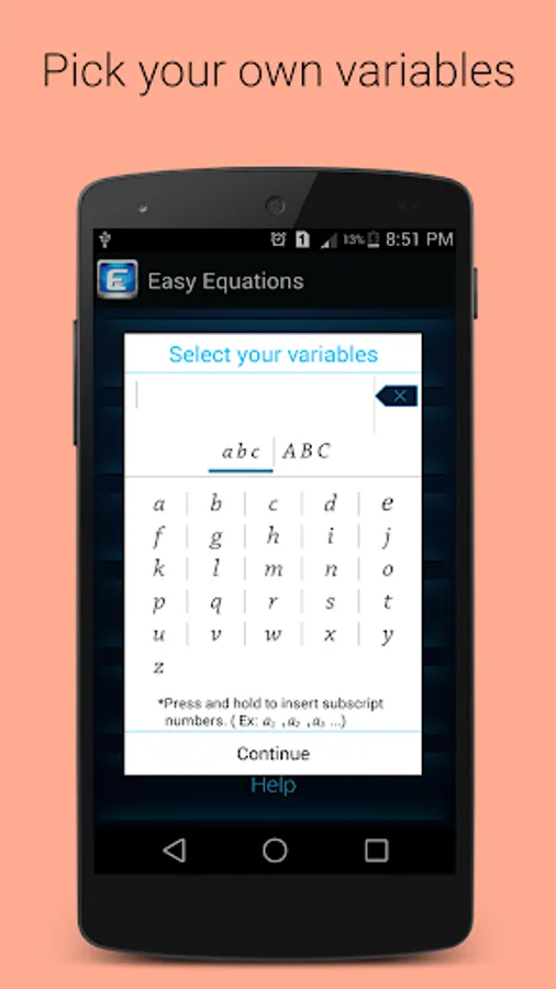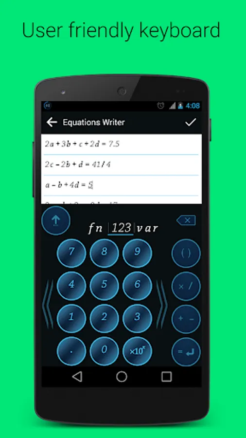 ★ Ability to use your own variables in linear equations (written equations mode). You can use subscripted numbers also. ( Ex: a1, a2, a3 ..)