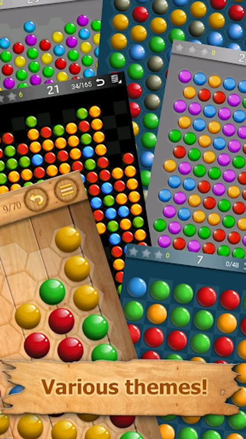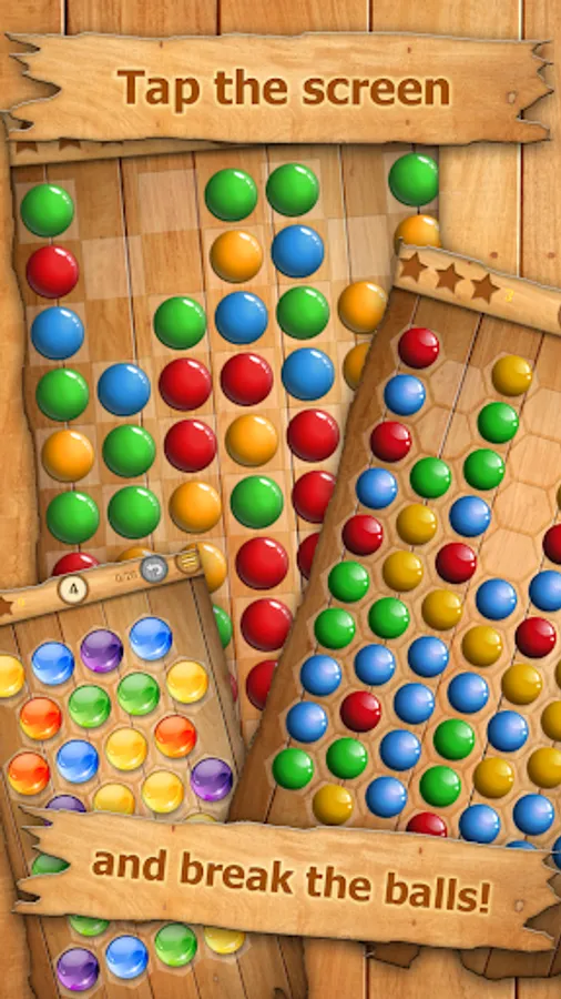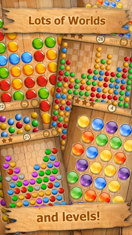* Your mission is to clear the board from the bubbles and collect all 3 stars for every level in each world. Tap at least two same balls to remove them from the board. Try to pop as many balls as possible at once. If you complete the level you will be awarded with gold stars.