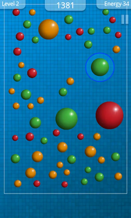 The aim of the game is to remove as many bubbles as possible and get the highest score. You have to move center of bubble outside the border to remove it. Merge same bubbles to get more points. Be careful. You will lose energy if you touch different bubble.