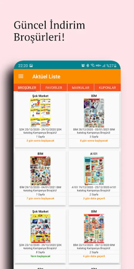 We can say that it is the most effective method to be aware of the current lists of dozens of companies at the same time, the current products, the current list application. It is impossible to miss an opportunity with the constantly updated reminder and alarm system. We have gathered A 101, Bim, Şok markets, migros, hakmar, carrefoursa, Watson, tedi, metro and hundreds of other brands under one roof for you.